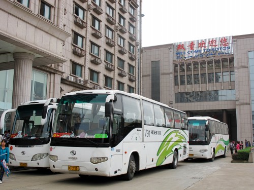 5日上午,大家經(jīng)過一夜美好的睡眠,看起來都那么快樂興奮。中午11點(diǎn),隨著一聲汽車笛聲,7輛白色的大巴車魚貫開進(jìn)公司大門,整齊地排列在了花園前的停車位上。