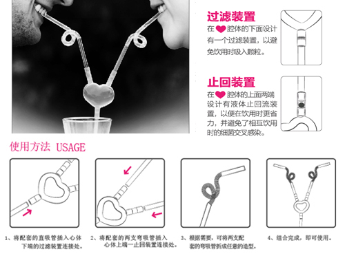 由雙童吸管全新獨創(chuàng)設計的全球?qū)@a(chǎn)品“愛心吸管”: