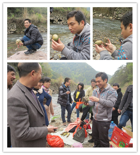 在這中間,幾個員工還用石頭給大家做了一條“路”。這樣一來,不僅給我們拓寬了場地,還增添了不少樂趣!看,這個獨(dú)石橋搭得怎么樣?這一條路,雖然不寬,也不長,卻把大家的心靈“通車”了。