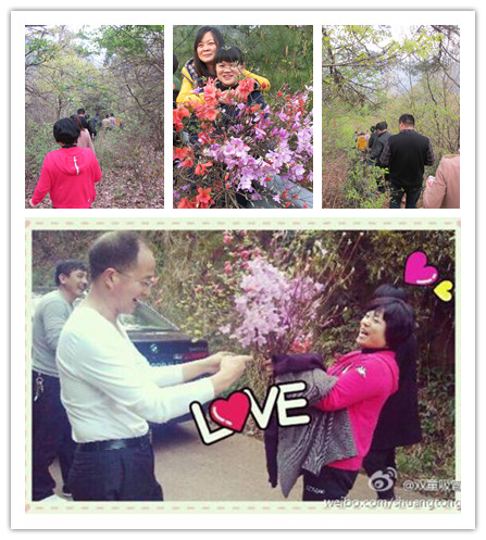 我們兵分兩路進(jìn)行了爬山比賽,當(dāng)雙童吸管的第一支登山小分隊已經(jīng)成功抵達(dá)目的地時,由當(dāng)家人樓總帶隊的第二支小分隊還在路上呢!當(dāng)樓總大汗淋漓地到達(dá)終點時,身上只剩下一件白色的薄薄長袖。他到達(dá)終點的第一件事就是把路上采來的一大束花送給了他心中最美的美女——樓夫人啦!