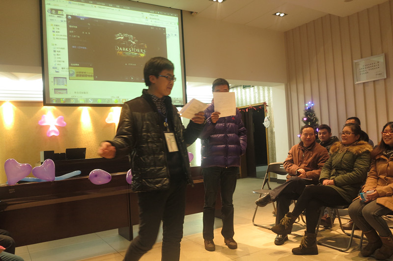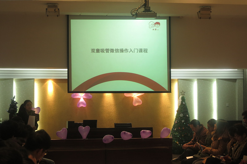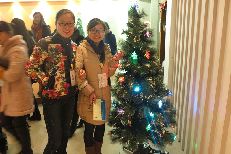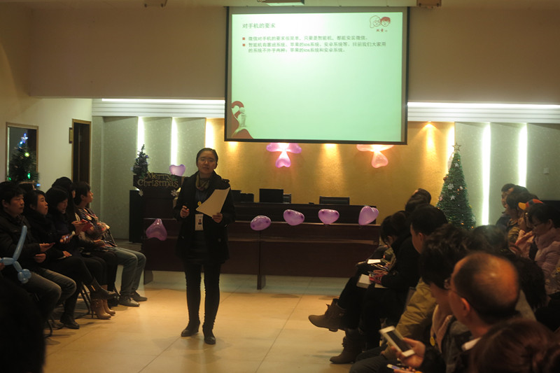 12月23日,每周一次的雙童學(xué)習(xí)會(huì)繼續(xù)在雙童九樓活動(dòng)室舉行。本次的學(xué)習(xí)會(huì)主題是圣誕節(jié),主持人是文宣部的三位“不靠譜”的美女主持人??纯次覀兊膶W(xué)習(xí)會(huì)現(xiàn)場(chǎng),到處都充滿了圣誕氣息,除了供應(yīng)商友情贊助的十幾顆大大小小的圣誕樹之外,更有幾位“不靠譜”文宣部美女純手工制作的雙童版圣誕樹,現(xiàn)場(chǎng)布置的很活潑、很溫馨有木有!