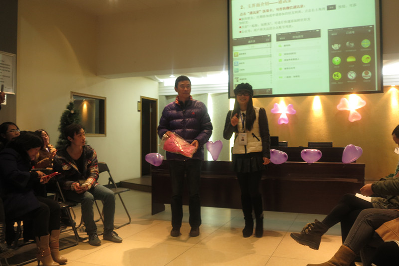 由雙童TV贊助播出的雙童學(xué)習(xí)會(huì)開始了!學(xué)習(xí)會(huì)的第一個(gè)環(huán)節(jié)是通過(guò)數(shù)7的游戲來(lái)談?wù)勛陨韺?duì)微信、微博的使用心得。才不過(guò)一會(huì)兒,幾位反應(yīng)速度不夠快的小伙伴就被拉到臺(tái)上分享啦!有的說(shuō)微信教會(huì)了他如何交到新朋友,有的說(shuō)微博可以給她提供最新的新聞,還有的說(shuō)可以通過(guò)這些新媒體社交軟件讓自己更加得潮呢!當(dāng)然了,也有的小伙伴落后了一步,坦言他還不怎么會(huì)用這些東西。所以,接下來(lái)的第二個(gè)環(huán)節(jié)就是由我們的主持人教引大家如何使用微信。通過(guò)我們美女主持人面對(duì)面解說(shuō),大家現(xiàn)場(chǎng)拿出手機(jī)邊學(xué)邊使用,隨時(shí)學(xué)到了一點(diǎn)技能就馬上做測(cè)試,往朋友圈里發(fā)各種學(xué)習(xí)文章,學(xué)會(huì)給別人點(diǎn)贊,互相比誰(shuí)的好友更多,快樂的學(xué)會(huì)了如何使用微信。微信,So easy!