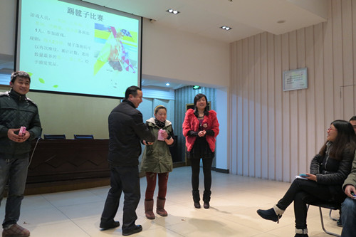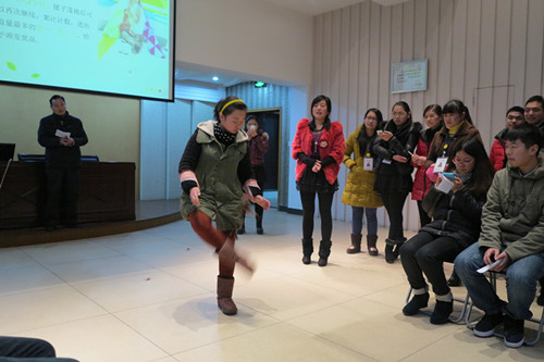 上完了課之后,萬眾期待的小游戲終于開始啦!這次的游戲獎品可是由張經(jīng)理從國外帶回來的哦!第一個(gè)游戲是踢毽子,看大家踢的,就快要飛起來啦!樓總也童心未泯,輪不到上臺表演,就偷偷拿著個(gè)毽子去臺下玩了起來。最后,由我們車間的美女獲得了這次游戲的冠軍,話說小編也好想知道她獲得的獎品是啥呀!