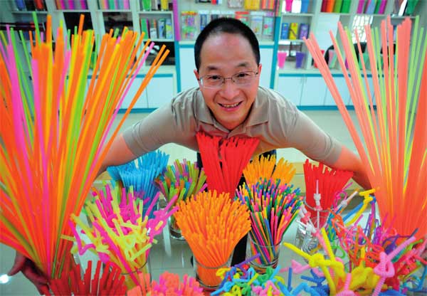 為了滿足小客戶的多元化需求,雙童吸管嘗試過各種產(chǎn)品創(chuàng)新,目前能看到的新產(chǎn)品有供兩人同時(shí)使用的情侶吸管、帶風(fēng)車功能的玩具吸管和能測溫變色的多功能吸管,甚至還有幫助兒童吃藥的吸管以及以淀粉為原料的吸管。“淀粉吸管我們已經(jīng)申請(qǐng)了專利,但一些技術(shù)性的難題尚未突破,因此量產(chǎn)還有待時(shí)日”。