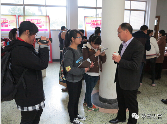 由于路上堵車,一趕到浙師大,連口茶還沒來得及喝呢,樓總就被送上了講臺,和一大屋子來自各個專業(yè)的大學同學們進行了互動和交流。樓總和大家分享了夢想的話題:無論您的昨天是怎么度過,無論您的今天是多么微卑,只要您內(nèi)心充滿夢想,一個人的成功,歸根到底,就是一步步持續(xù)的積累。每一秒鐘的積累成為今天這一天;每一天的積累成為人的一生。那些讓人驚奇的偉業(yè),幾乎都是極為普通人兢兢業(yè)業(yè)、一步一步持續(xù)積累的結果。當然了,同學們依舊對我們雙童的創(chuàng)新吸管最感興趣,哦不,不光光是同學們,連在一旁的領導們都目不轉(zhuǎn)睛呢!