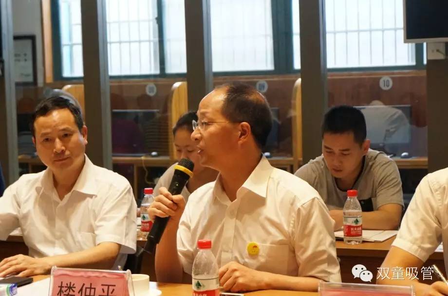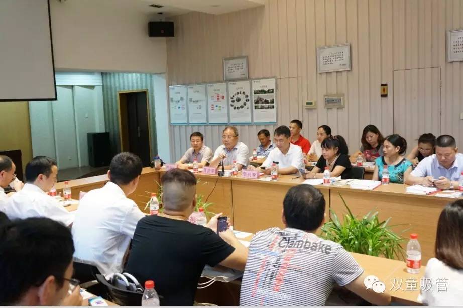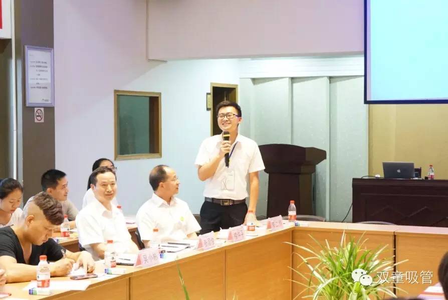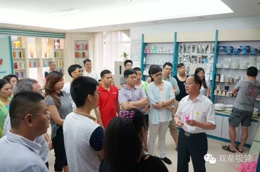 在參觀完畢后,所有學(xué)員又重新回到了九樓閣,參加接下來(lái)的重頭戲——企業(yè)交流會(huì)。會(huì)議一開(kāi)始,由義烏市企業(yè)聯(lián)合會(huì)會(huì)長(zhǎng)賈貴南發(fā)表講話。說(shuō)到賈會(huì)長(zhǎng),他和雙童的淵源可深的很呢!早在2006年,當(dāng)時(shí)義烏市經(jīng)發(fā)局的賈局長(zhǎng)陪同國(guó)家中小企業(yè)司的顧司長(zhǎng)來(lái)雙童參觀,顧司長(zhǎng)參觀后感慨:我終于找到了夢(mèng)寐以求的企業(yè)!從此之后各個(gè)社會(huì)媒體都在政府的推動(dòng)下開(kāi)始關(guān)注雙童吸管。所以說(shuō),沒(méi)有賈局的推薦就沒(méi)有今天的雙童吸管。吸管妞代表所有雙童人要向賈局表達(dá)最深切的謝意!
