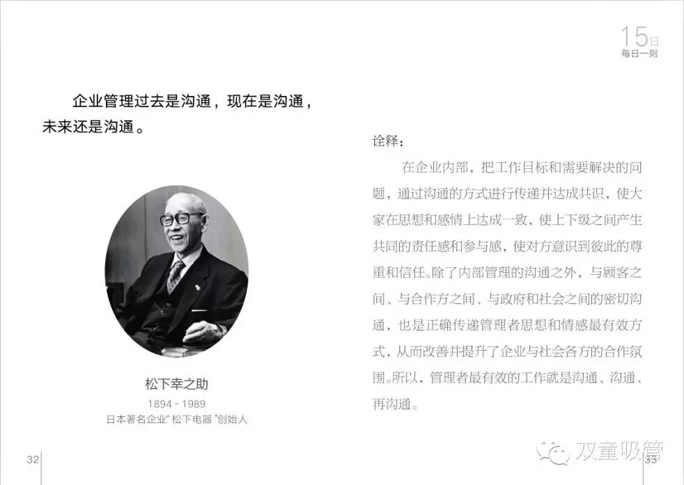 而這一本《每日一則》將會(huì)在印刷成冊(cè)后發(fā)給雙童的每一位員工,要求員工每天都按照上面的日期標(biāo)號(hào)進(jìn)行誦讀理解,一個(gè)月31篇,一年就可以將每篇名言都誦讀12遍。