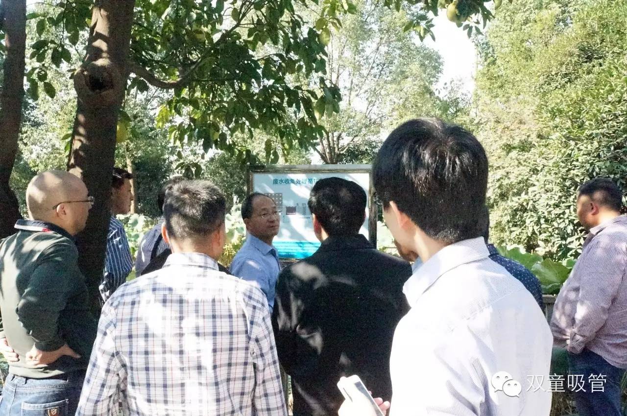 民企聯(lián)合會的一行眾人,由于人數(shù)眾多,分別由樓總和李總帶領兩支隊伍參觀我們的雙童,參觀時好不熱鬧!首先來到了我們的中水回收池塘這個雙童的“著名景點”,樓總給眾人講解了我們雙童的廢水循環(huán)利用的系統(tǒng)和原理,眾人對雙童關于綠色環(huán)保的做法給予了極大的肯定!
