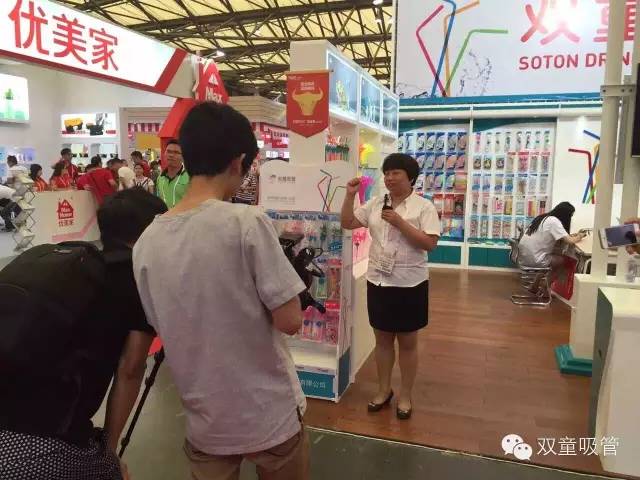 展會(huì)上,朱芳珍在媒體鏡頭前為雙童代言