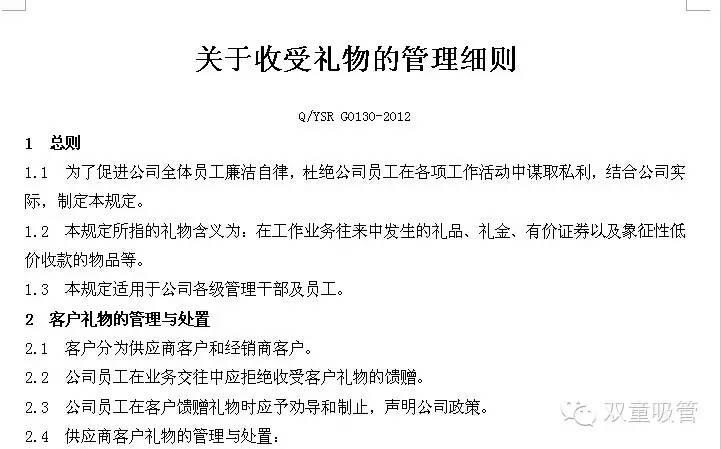 這個管理細則詳細地規(guī)定了雙童員工當(dāng)收到客戶禮物時應(yīng)作如何處理。下面吸管妞和大家詳細講一講吧!
