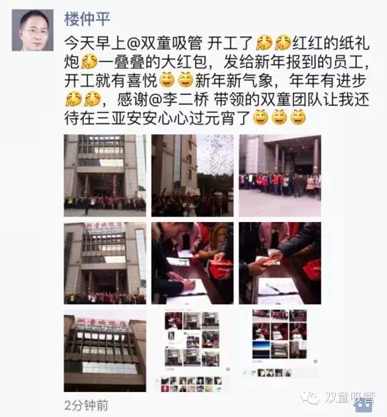 今年,每位回廠的員工都會(huì)在開工儀式上收到一個(gè)大大的開工紅包哦!這也給開工儀式帶來了更多的歡樂和喜悅!咦?奇怪了,我們的當(dāng)家人樓總咋不見蹤影呢?看看朋友圈,原來他還在三亞沒回來呢!而不管是過年前的一系列收尾安排,還是今天這場(chǎng)開工儀式,全都是由二當(dāng)家李二橋帶領(lǐng)團(tuán)隊(duì)協(xié)作完成的呢!這些原本需要老板親自策劃動(dòng)腦的事情,現(xiàn)在已經(jīng)慢慢全部交由我們的雙童團(tuán)隊(duì)合力完成,可以看出,我們的團(tuán)隊(duì)也在慢慢的成長(zhǎng)成熟,可以不依賴當(dāng)家人獨(dú)當(dāng)一面啦!