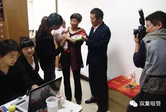 三代同堂的幸福一家人吸引了不少記者