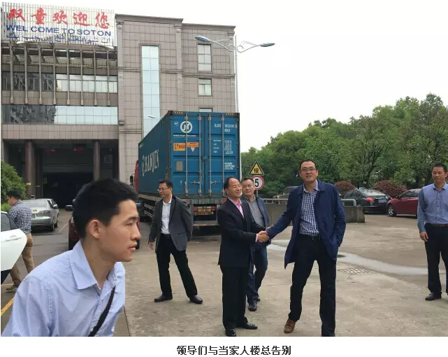 由于領(lǐng)導(dǎo)們還要去參觀別家企業(yè),所以在參觀完車間后,他們就要和當(dāng)家人樓總說再見了。當(dāng)家人樓總也熱情地同他們一一握手,并邀請他們有機會再來雙童做客!