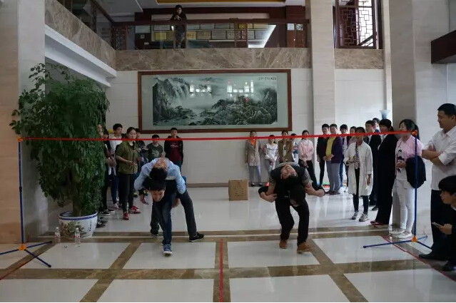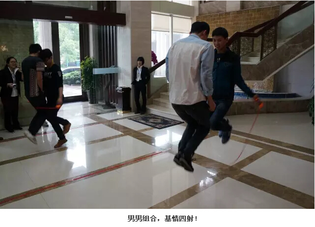 咦!這些小伙怎么個個摩拳擦掌呀!原來我們的雙人賽由各個團隊派出2位男生參賽,背靠背過杠通過賽道,拿到繩子跳足個數(shù)后回到原點。背靠背過杠?這是什么玩法?妞就放幾張照片讓大家好好瞧瞧!看看大家這架勢,看來男男組合還是蠻靠譜的嘛!