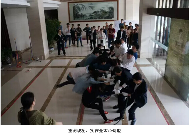 最激動人心的拔河項目就要開始啦!這次我們采用的是左右端拔河的玩法,是不是很新奇呀?看看現(xiàn)場觀眾的反應(yīng)你就知道啦!一二三一二三,隊員們喊著口號,奮力拼搏,看得吸管妞都想放棄主持上場練練手呀!