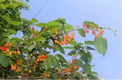 在這一片綠色海洋里,閃著誘人光芒的果實更顯得引人注目啦!在“雙童”,果樹可是隨處可見,柚子樹、柿子樹、葡萄樹、桃樹、枇杷樹、石榴樹、櫻桃樹……這么多的果樹,保證了我們一年四季都有水果豐收!而現(xiàn)在,正是“雙童”櫻桃的成熟季!