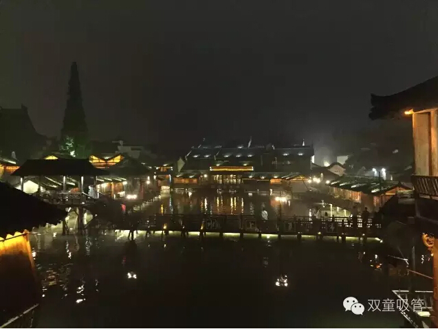 晚上,我們?nèi)胱×酥袊詈蟮恼硭思?span style="font-family:Calibri;">---烏鎮(zhèn)西柵景區(qū)。它是烏鎮(zhèn)投入十?dāng)?shù)億資金重新修繕的一處新水鄉(xiāng)景觀,內(nèi)有明清建筑25萬平方米,街區(qū)內(nèi)分布著老郵局、三寸金蓮館、曬市場、露天影院、酒吧……