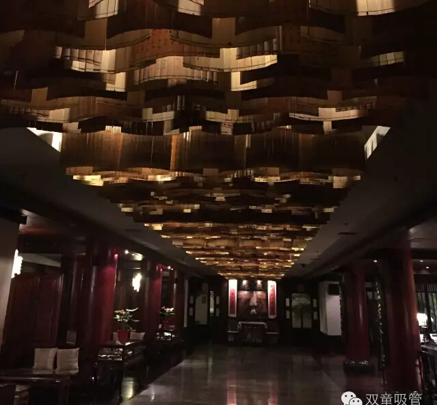 我們?nèi)胱蹑?zhèn)景區(qū)內(nèi)的昭明書舍酒店,酒店大堂的燈都是用書簡裝飾,文房四寶靜靜擺放其中,別有格調(diào)。