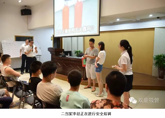 在安全月中,“雙童”會分批次開展員工大會,二當(dāng)家李二橋、李秀前廠長會同員工們進行深刻的安全教育培訓(xùn),舉了不少近年來發(fā)生的消防事故案例,讓員工深刻直觀地認識到防火重要性。