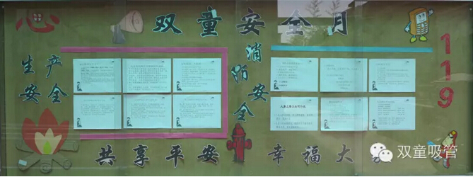 為了讓大家增強安全意識,防患于未然,我們的文宣科分別用黑板報、軟木板、員工活動等形式,用通俗易懂的語言,介紹了有關(guān)于企業(yè)消防安全、企業(yè)生產(chǎn)安全等一系列基本的安全小常識,大大提高了雙童員工對于安全問題的認知!
