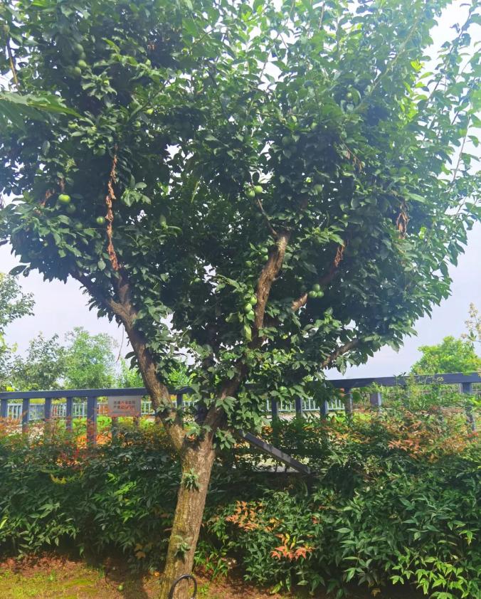 魚塘旁邊的李子樹也不負眾望,在水邊因為沒有其他高大樹木的遮擋,光照充足,有了絕佳的生長機會,看這些李子個個長得快有小孩的拳頭大了,就是不知道味道怎么樣呢?