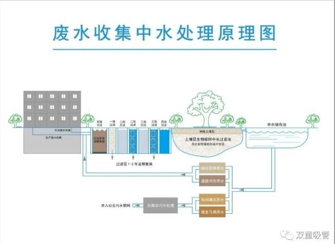 為此,“雙童”在廠區(qū)內(nèi)設(shè)有一套“廢水收集中水回用系統(tǒng)”,能夠?qū)T工洗臉、洗澡、洗衣服所產(chǎn)生的廢水通過管道匯集,用細(xì)沙、細(xì)木炭、石英砂、活性炭等進(jìn)行隔離過濾和技術(shù)處理。