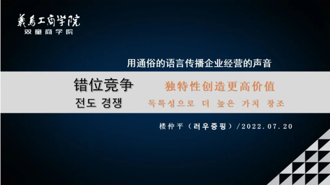 為了讓韓國學員,能夠充分領(lǐng)會到相關(guān)理念。樓仲平舍棄了大量的學術(shù)性知識要點,通過結(jié)合實際行業(yè)分析現(xiàn)狀、研習方案,為同學們打開了市場的錯位競爭的全新思路。