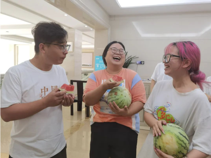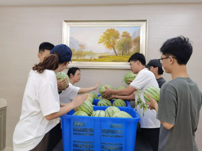 這些西瓜在園丁叔叔的辛勤栽培下,個(gè)個(gè)都長(zhǎng)得是又大又紅。炎炎夏日,來一口清爽的大西瓜,簡(jiǎn)直是夏天最好的儀式!給員工們送上爽口的水果,讓大家不僅吃著甜,更是心里甜!