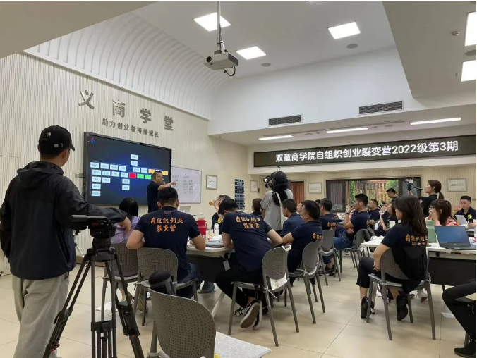 今年5月,攝制組如愿來到雙童開啟第一階段的拍攝之旅。針對(duì)“共同富?!敝黝},攝制組歷經(jīng)一周多的時(shí)間,深度跟拍了“雙童商學(xué)院”《自組織創(chuàng)業(yè)裂變營(yíng)》第三期的課堂現(xiàn)場(chǎng),還與幾位通過“雙童創(chuàng)業(yè)共享平臺(tái)”闖出一片天地的“雙童”新一代創(chuàng)業(yè)者們進(jìn)行了采訪交流。