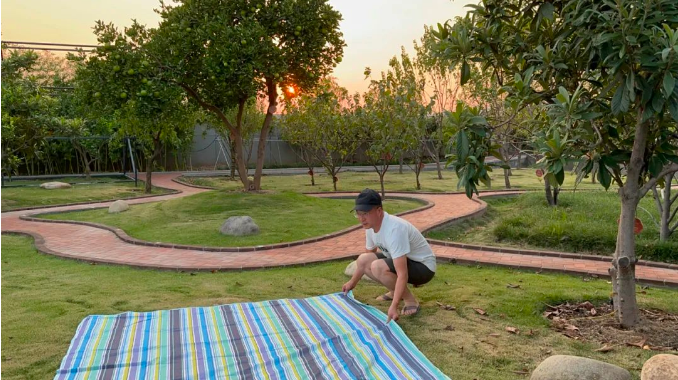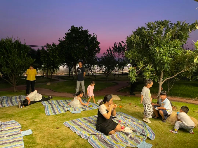 酒足飯飽后,“雙童”人在草坪上度過(guò)這閑適的夜晚