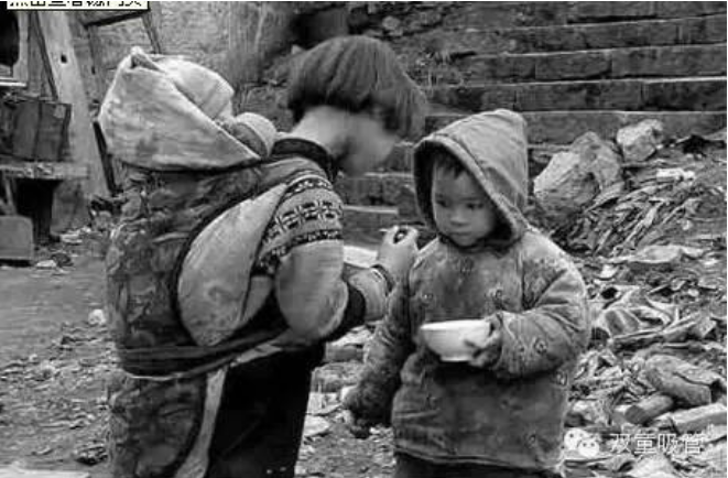 一天中午也是放學(xué)回家,打開鍋蓋又是那個(gè)紅薯干飯,卻看到鍋邊上有個(gè)白色的小搪瓷罐,罐邊上還沾著一兩顆白米飯。哎呀,那是不得了的,你們有白米飯吃,為什么我沒有白米飯吃?然后我死命的哭,死命的鬧,跑出去繞著整個(gè)村子哭,邊跑邊喊,你們有白米飯吃,而我沒有白米飯吃。
