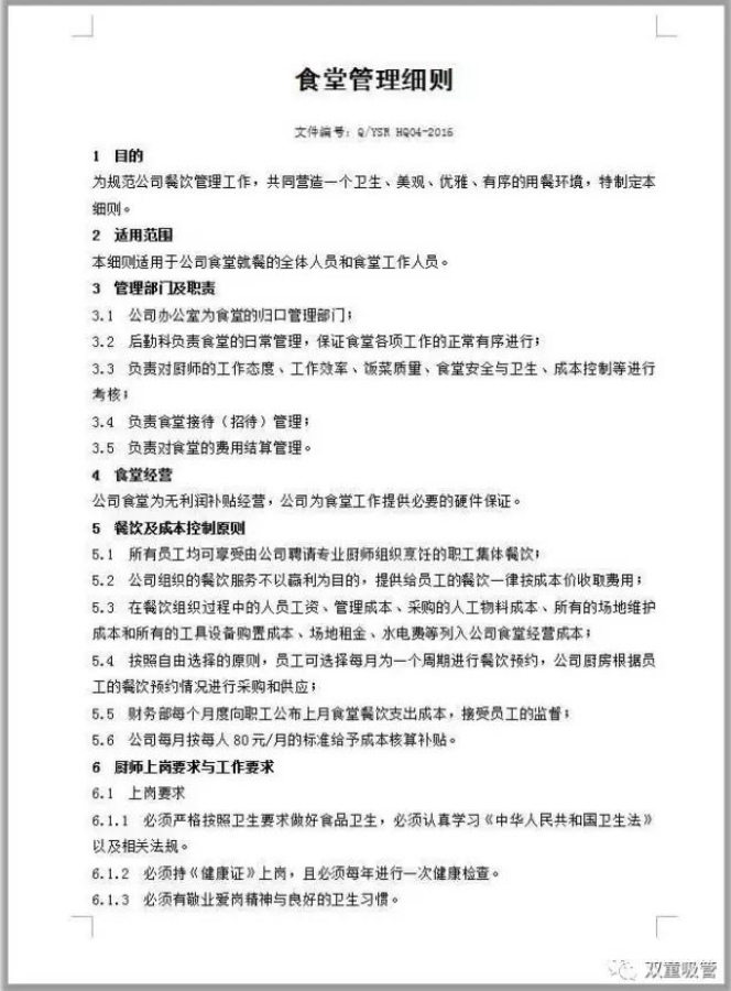 “雙童”食堂管理細則,涉及到餐飲管理的各個方面