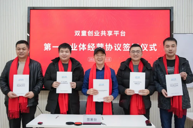 “雙童創(chuàng)業(yè)共享平臺(tái)”經(jīng)營(yíng)協(xié)議簽署儀式
