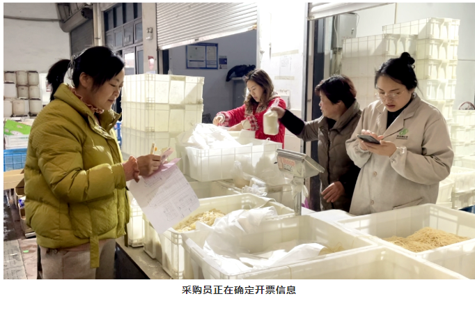 除此之外,食品安全是員工最基本的訴求,也是后勤團(tuán)隊(duì)工作的著力點(diǎn)。在小分隊(duì)采購過程中,還需要根據(jù)《雙童食堂食材采購標(biāo)準(zhǔn)》,對(duì)供應(yīng)商的《生產(chǎn)營業(yè)執(zhí)照》、《食品流通許可證》和《產(chǎn)品質(zhì)量監(jiān)督檢查合格證》等相關(guān)證件進(jìn)行考察,然后根據(jù)價(jià)格高低、質(zhì)量?jī)?yōu)劣進(jìn)行篩選,從而選擇出最符合食堂需求的原材料。