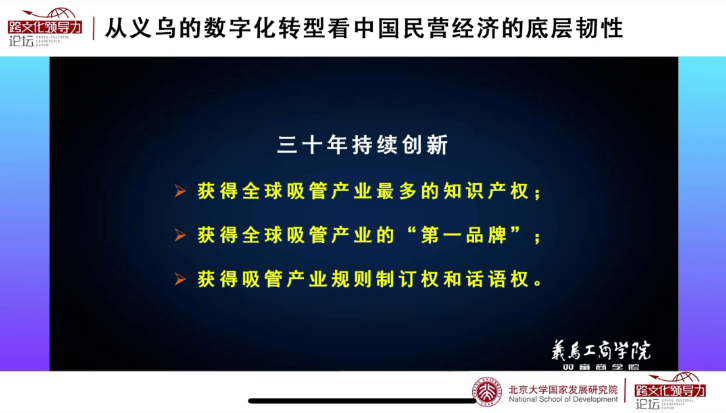 近期,“雙童”樓仲平受北大國發(fā)院邀請,在跨文化領(lǐng)導(dǎo)力論壇做線上直播《從義烏的數(shù)字化轉(zhuǎn)型看中國民營經(jīng)濟的底層韌性》課程。這堂直播課上,樓仲平從中國造隱形冠軍的視角,帶領(lǐng)大家感受中國民營經(jīng)濟的國際化轉(zhuǎn)型,及其歷次轉(zhuǎn)型中展現(xiàn)出來的底層韌性。