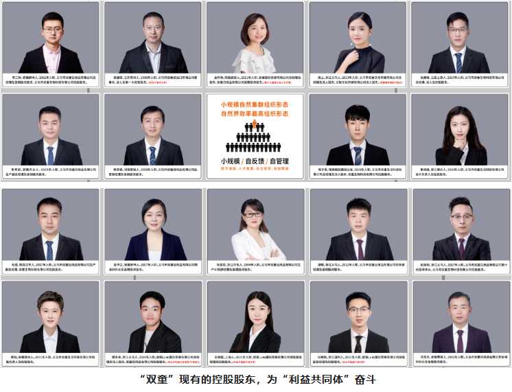 近期,金華新聞客戶端報(bào)道了“雙童”與眾不同的新模式:“把企業(yè)規(guī)模做小,把創(chuàng)業(yè)矩陣做大”(戳文末“閱讀原文”)。董事長樓仲平把“在公司內(nèi)部培養(yǎng)出五十位老板”、讓員工“共同富?!弊鳛樽约旱氖姑非?,而這些都是通過”雙童創(chuàng)業(yè)共享平臺(tái)”來實(shí)現(xiàn)的。
