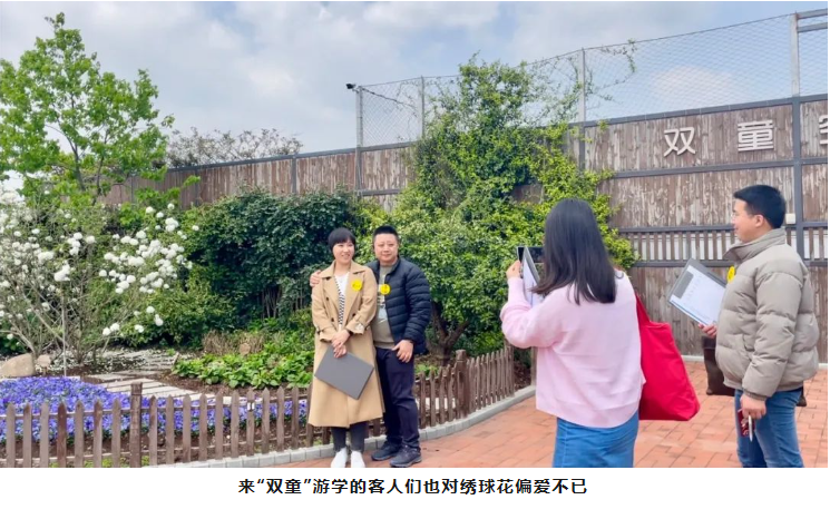 一進(jìn)入“雙童”空中花園,就能看到群花斗艷。在萬紫千紅里,一顆白色的花樹尤其顯眼。繡球花盛開在春季,其余時間都是綠色枝丫。每年的四月是最佳觀賞期,也就是說,現(xiàn)在想一覽好風(fēng)光的可要抓緊時間啦!