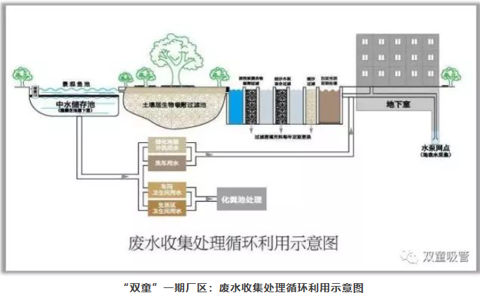 “雙童”對于液態(tài)垃圾也有自己的處理妙招!在“雙童”的廠區(qū)內(nèi)設(shè)有一套“節(jié)水神器”——廢水收集中水回用系統(tǒng)。在員工生活區(qū)的衛(wèi)生間內(nèi)鋪設(shè)管道,將員工洗臉、洗澡、洗衣服所產(chǎn)生的廢水通過管道匯集,用細(xì)沙、細(xì)木炭、石英砂、活性炭等進(jìn)行隔離過濾和技術(shù)處理,處理過后的水會流入專門的中水儲存池中。