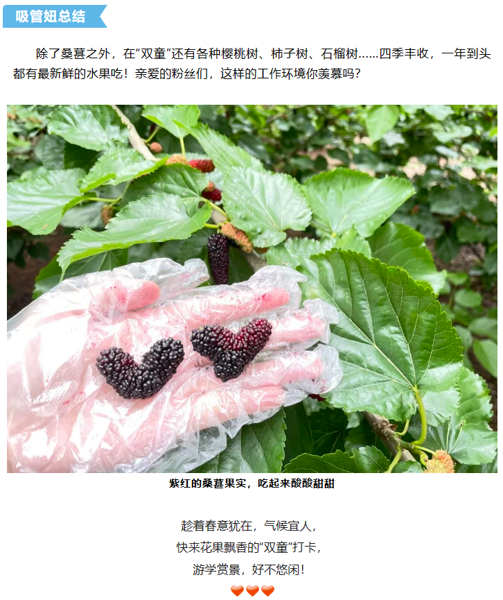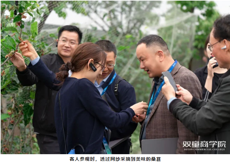 這樣長在空中花園的桑葚,讓人感受到“雙童”花園式工廠的溫馨與趣味十足。同時(shí),這樣的珍惜利用土地資源,不少學(xué)員都為“雙童”的人性關(guān)懷與愛護(hù)自然的態(tài)度點(diǎn)贊!