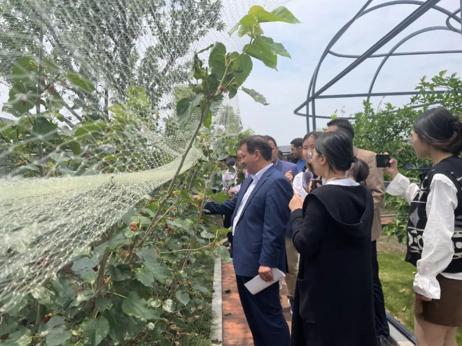 枝頭飽滿的桑葚成功引起了阿拉伯參訪團們的注意