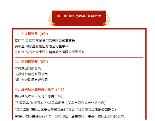 “雙童”在義烏企業(yè)的排名節(jié)節(jié)攀升!積善之家必有余慶,每個(gè)人對(duì)慈善的看法不同,而“雙童”選擇了善而不言,行而不悔,在自身可承受的范圍之內(nèi),一直默默行在路上!