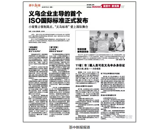 歷時(shí)九年,輾轉(zhuǎn)六國,由“雙童”主導(dǎo)并起草的《聚丙烯飲用吸管規(guī)范》ISO國際標(biāo)準(zhǔn)終于在瑞士日內(nèi)瓦的ISO國際標(biāo)準(zhǔn)化組織向全球162個(gè)國家和地區(qū)正式發(fā)布!消息一出,引起了各大新聞媒體的關(guān)注。這不,浙中新報(bào)對此進(jìn)行了大版面報(bào)道,下面妞就帶大家來看看吧!