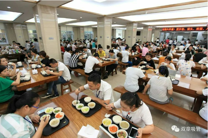 “雙童”的干凈、敞亮的員工餐廳