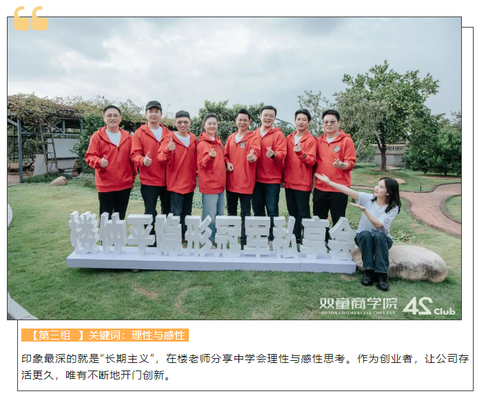 一千個(gè)人眼中有一千個(gè)哈姆雷特,36位同學(xué)來(lái)自各行各業(yè),帶著自己的經(jīng)驗(yàn)認(rèn)知,以及“開(kāi)門”思維,一齊就多個(gè)“雙童”案例的開(kāi)放式問(wèn)題進(jìn)行總結(jié)歸納,并探討各自企業(yè)復(fù)制經(jīng)驗(yàn)的可能性。