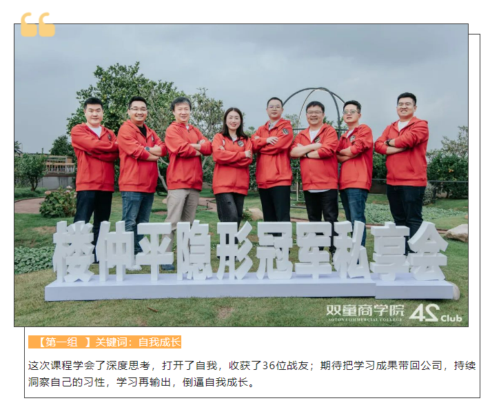 目前,樓仲平隱形冠軍私享會(huì)第一期已結(jié)束第一模塊的學(xué)習(xí),接下來(lái)繼續(xù)開(kāi)展6大模塊,主題分別為“破圈”、“取舍”、“進(jìn)化”、“案例”、“出發(fā)”、“開(kāi)悟”,一起期待吧!