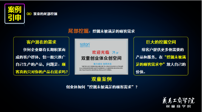 樓總認(rèn)為“路徑依賴”是阻礙改變的難點(diǎn),要想去挖掘看起來(lái)空間更小的尾部,就要放棄主流,突破自己的“路徑依賴”。他以“雙童”的“小客戶原則”為例進(jìn)行詳細(xì)闡述。