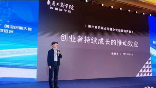 樓仲平會(huì)上分享《創(chuàng)業(yè)者持續(xù)成長(zhǎng)的推動(dòng)效應(yīng)》