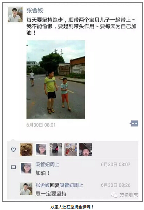 養(yǎng)成跑步習(xí)慣后,就算活動結(jié)束了,”雙童“人的跑步熱情可是不減呢!看,這位”雙童“媽媽還帶著她的寶貝們一起呢!看來大家領(lǐng)悟到運動和工作結(jié)合的樂趣啦!童鞋們,生命不息,運動不止,快來和我們”雙童“一起奔跑吧!