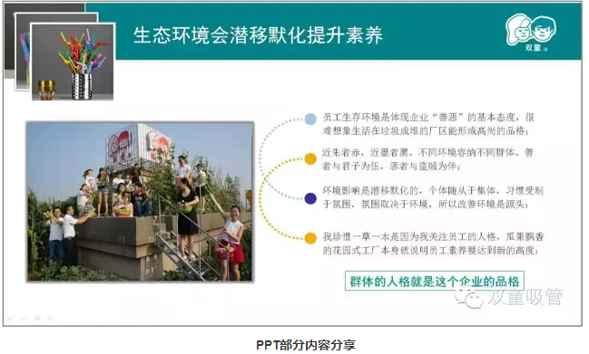 親愛的“雙童”粉絲們,你們還記得上堂課當家人樓總提到其實九樓的空中菜園、廠區(qū)的綠化,甚至于公司墻上的標語文化都和產(chǎn)品質量有著很大的關系嗎?今天妞就圖文并茂展示給大家看看吧!