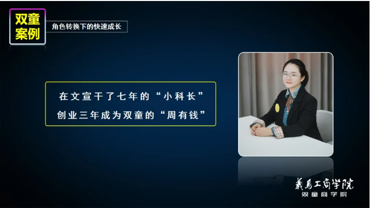 就像雙童平臺第五創(chuàng)業(yè)體總經(jīng)理周上,沒有被機制推動之前,她做了7年的“無憂無慮”的“小科長”,但通過裂變機制從員工向創(chuàng)業(yè)者角色轉換后,僅用3年的時間,自我驅動,成為雙童平臺成長最快的創(chuàng)業(yè)體總經(jīng)理!
